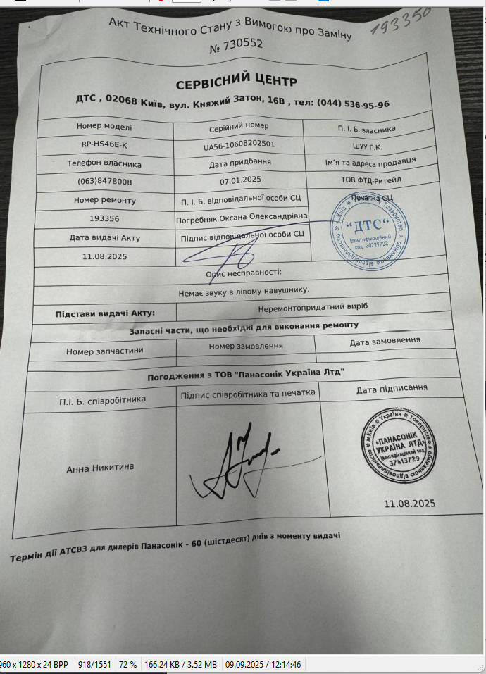 Отмена обязательной выдачи гарантийных талонов в комплекте с наушниками Panasonic с июля 2013г.