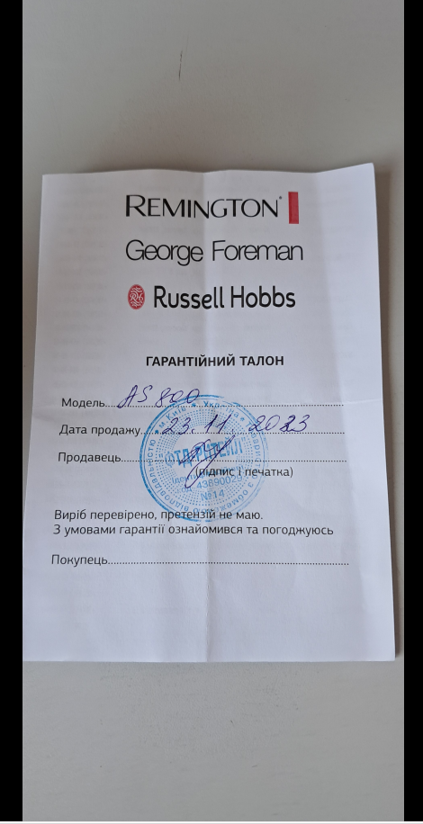 - Оригинальный Гарантийный Талон производителя, заполненный надлежащим образом - (ОРИГИНАЛ).