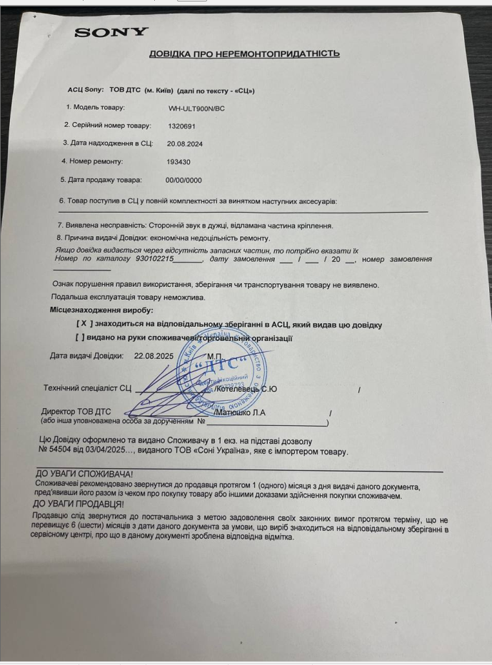 2. Гарантийный талон, Образец 2 заполненненый надлежащим образом. Наушники могут идти без гарантийного талона, принимаем.