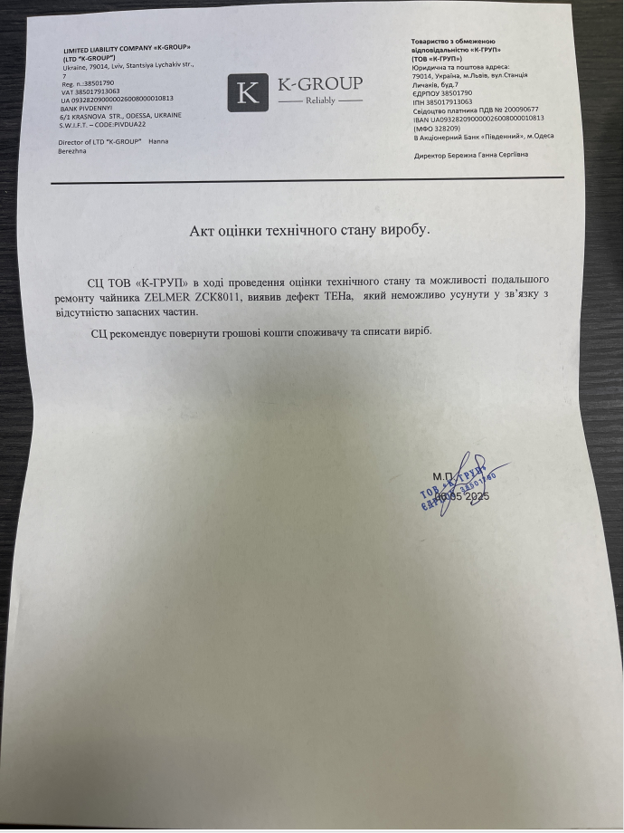 1. АКТ СЦ о неремонтопригодности (срок действия акта 3,5 месяца)