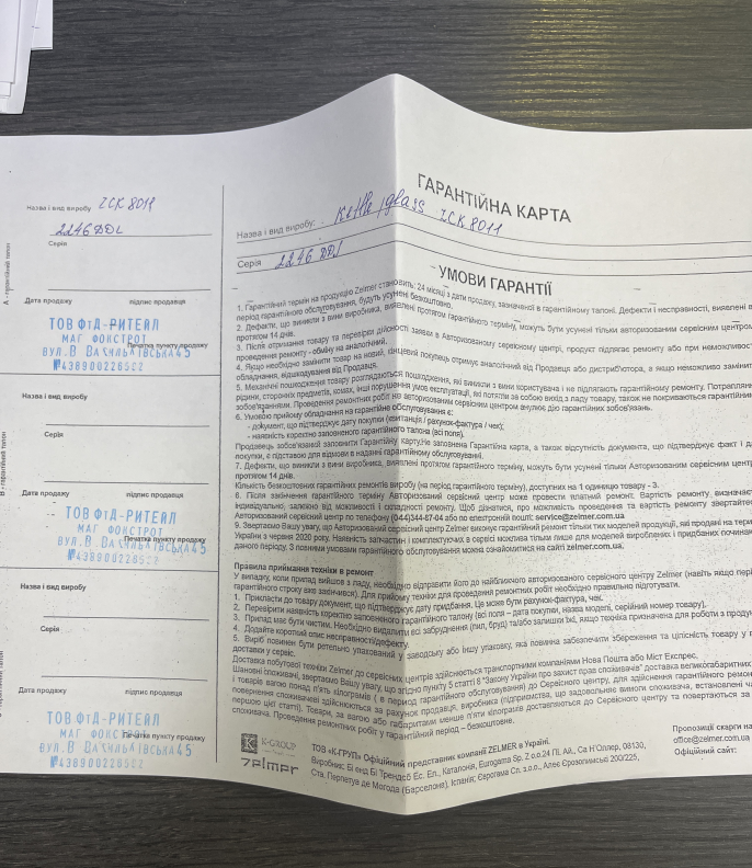 2. Гарантийный талон (1) (2) заполненный надлежащим образом.
