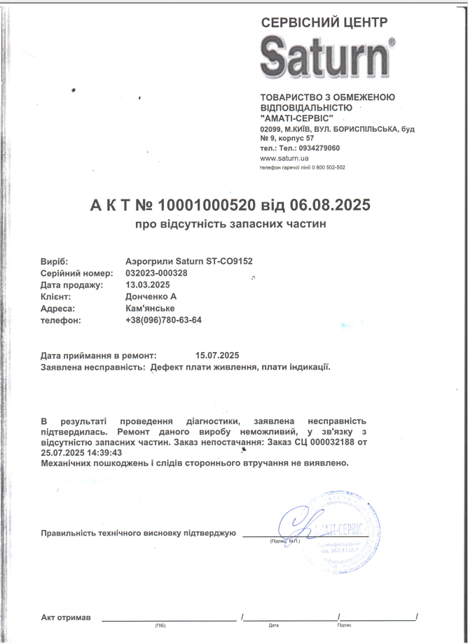 Все інше обслуговується в сц SATURN