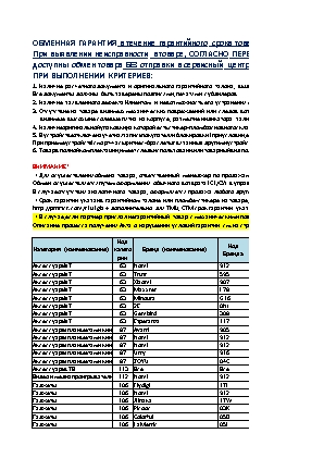 Перечень обменного товара